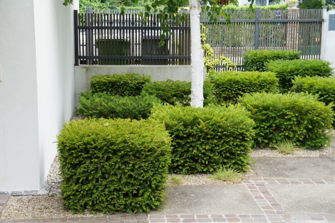 Der in der ersten Phase seiner Entstehung knapp bemessene Garten wurde in mehreren Etappen erweitert. Ursprünglich um den Pool gruppiert umfasst der Garten heute auch einen offenen Gartenpavillon, der die Gartenerweiterung in zwei Bereiche gliedert. Dieser Pavillon zitiert balinesische Gartenarchitektur und steht in spannendem Kontrast zum Wohnhaus.