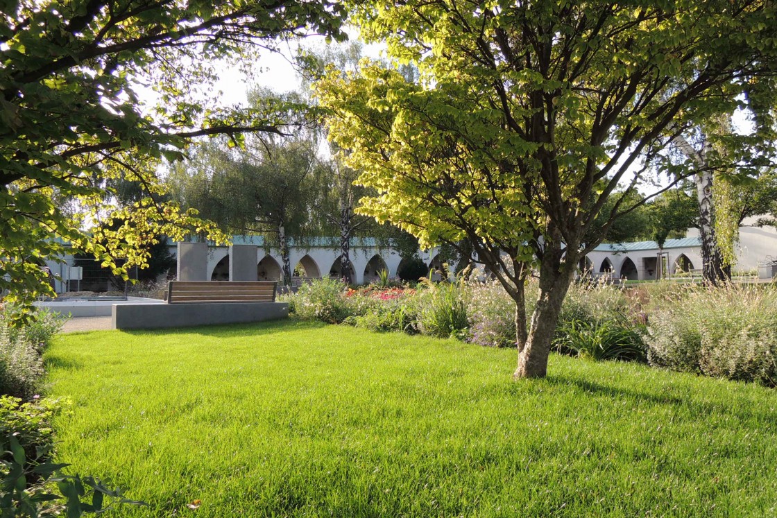 Das Krematorium des Wiener Zentralfriedhofs, das in der Zwischenkriegszeit nach Entwürfen von Clemens Holzmeister errichtet wurde, ist Zentrum des großen Urnenhains. Der Platz vor dem Krematorium ist von Arkaden umschlossen und bildet einen eigenständigen Raum. Für diesen Platz entwarfen wir eine neue Gemeinschaftsgrabanlage. Es gibt hier nur mehr wenige große Grabsteine, auf denen die Verstorbenen verewigt werden. Die Urnen selbst werden anonym bestattet.