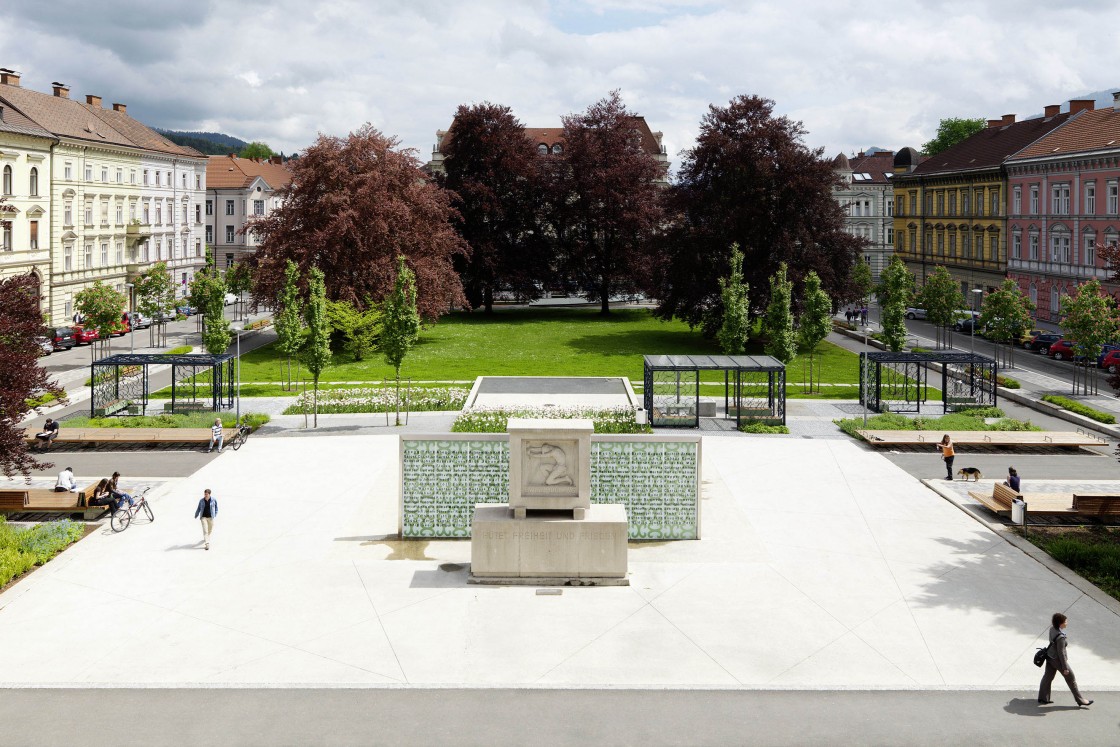 Der Gärnerpark ist eine der zentralen Grünflächen von Leoben. Der Park wurde bis auf das Denkmal und einige imposante Altbäume völlig neu gestaltet. Der abgesenkte Rasen erhielt durch die niedrige Einfassungsmauer eine klare Form. Zum Denkmal wurde der Niveauunterschied mit einer Abfolge von Staudenbeeten, Aufenthaltsplätzen und Pergolen gestaltet. Der Platz um das Denkmal wird zum neuen Zentrum des Parks.