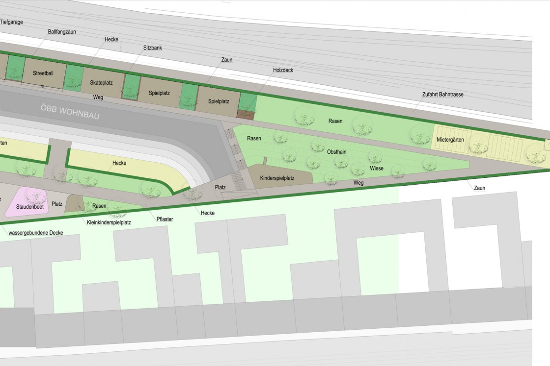 Studie und Entwicklungskonzept für eine Wohnhausanlage auf einem ÖBB Areal.